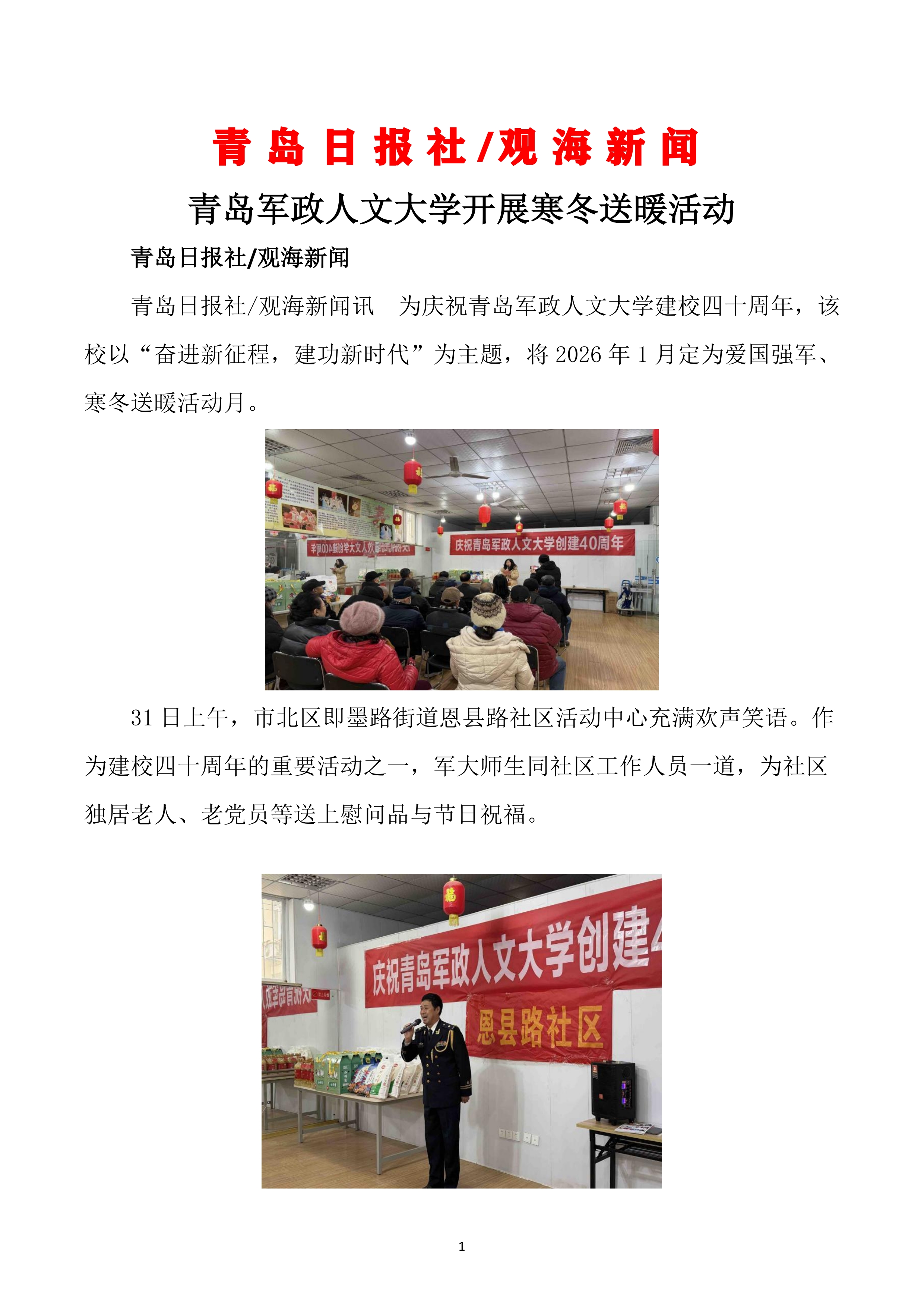 最新动态 > 青岛军政人文大学开展寒冬送暖活动青岛日报社观海新闻讯