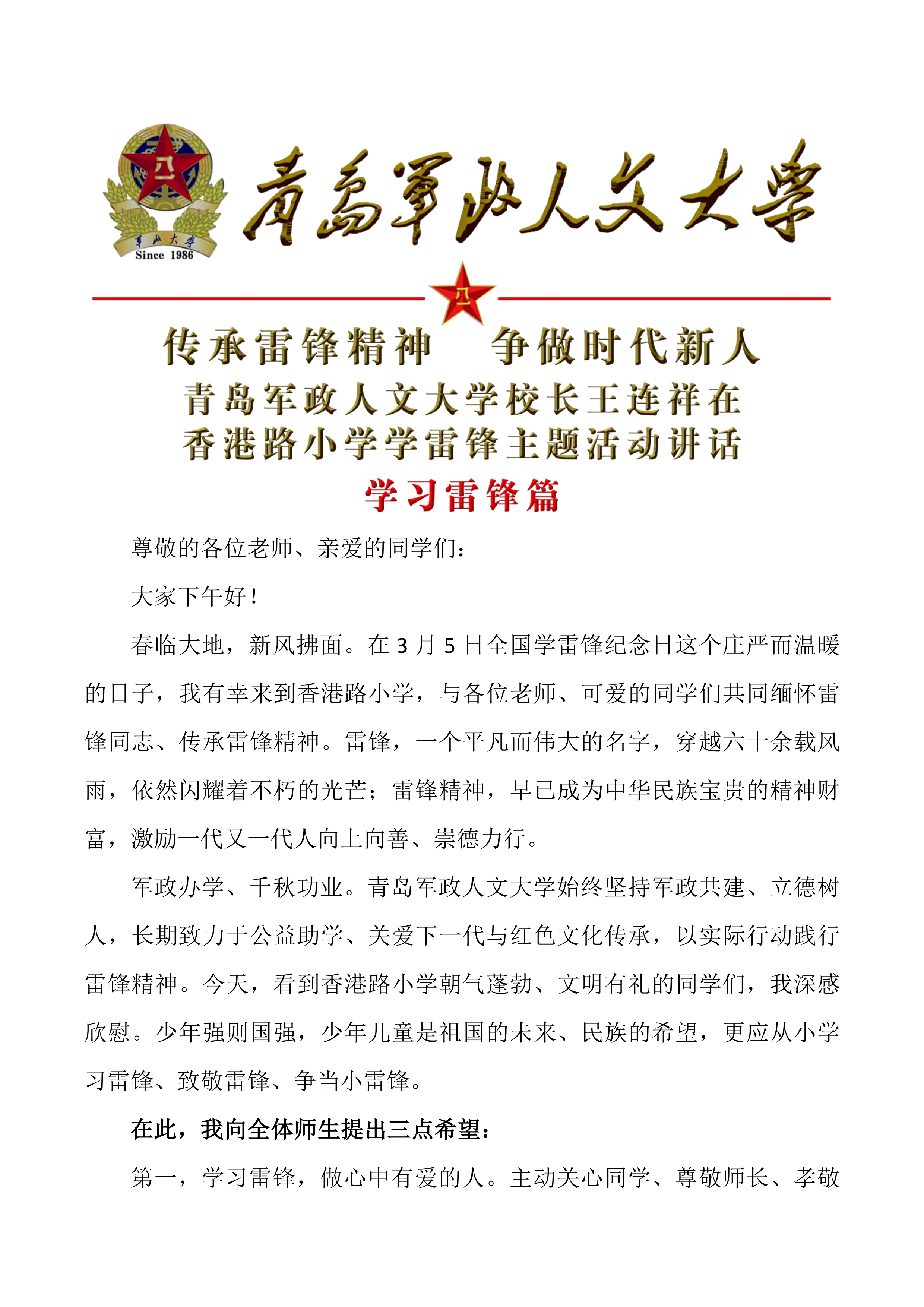 最新动态 > 军政人文大学学习雷锋精神